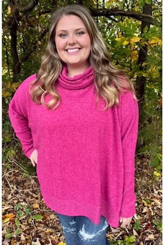 Get cozy in our Curvy Brushed Cowl Neck Sweatshirt! Perfect for cooler weather, this top features a soft brushed fabric and a stylish cowl neck design. The curved hemline adds a flattering touch to any outfit. Stay warm and look great in this must-have sweatshirt.