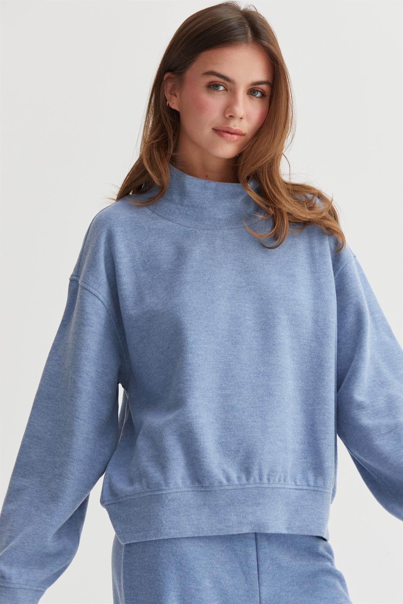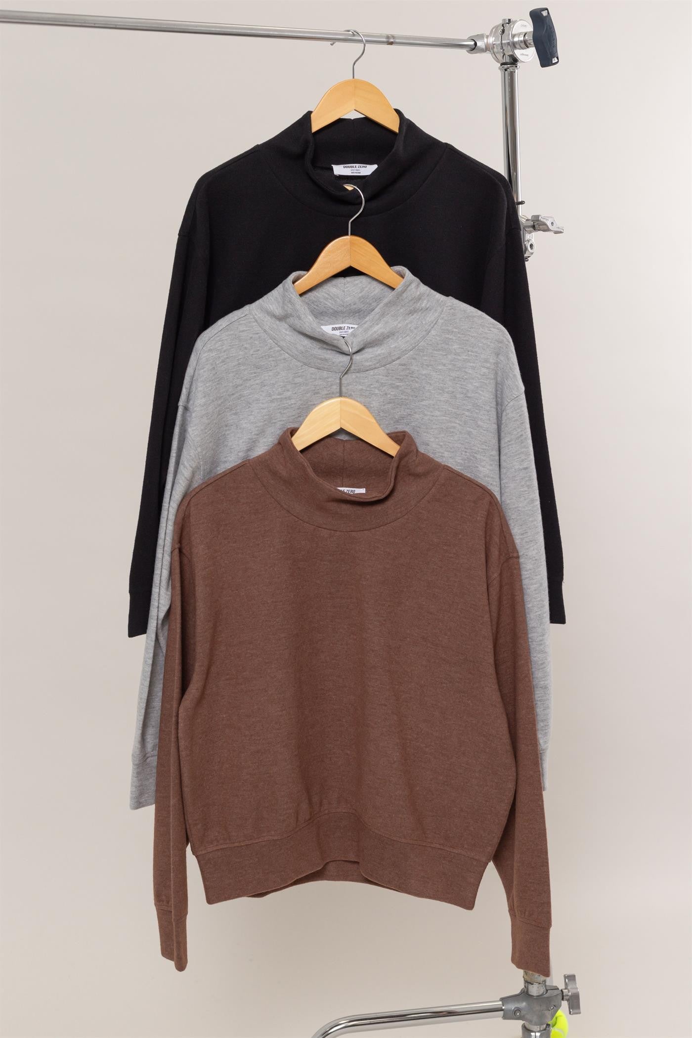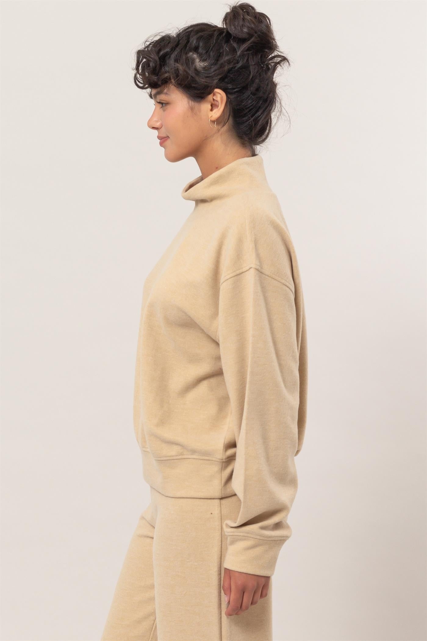 Stay cozy and warm in our funnel neck sweatshirt. Made with a soft brushed knit fabric, this sweatshirt will keep you comfortable during chilly days. The relaxed fit, drop shoulders, and extra-long sleeves add a touch of style to this versatile piece.