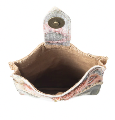 This amazing bag tells a story with vintage tapestry pieces artfully stitched together, creating a rustic patchwork of earthy tones and geometric patterns. The cream upcycled canvas back has an extra zippered pocket for convenience. The detachable, adjustable shoulder strap in matching leather. Perfect for the eco-conscious fashionista who appreciates sustainable, one-of-a-kind accessories!