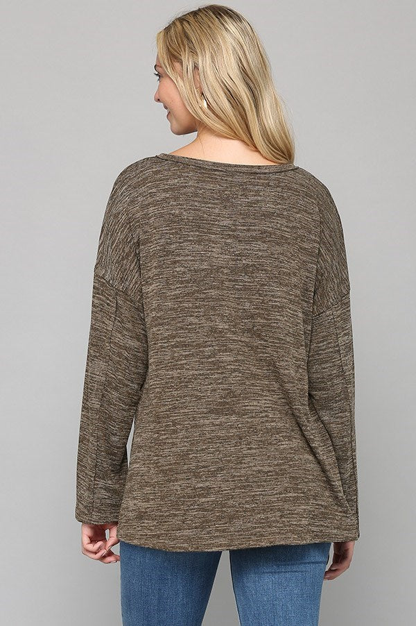Two-tone Slub Knit Raw Edge and Side Slit Detail Top